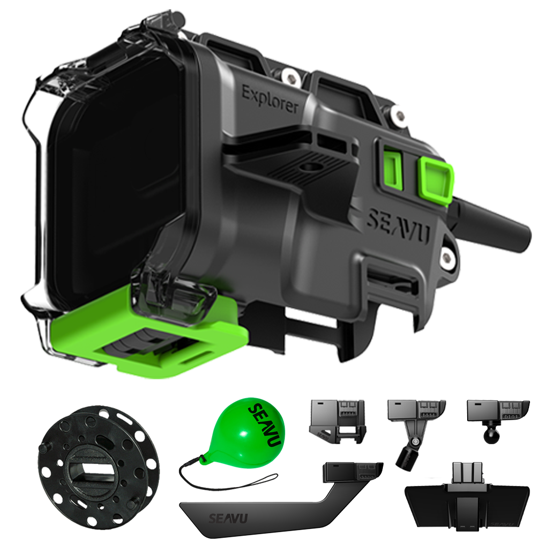 该套装包含所有 Explorer Adventure 配件,包括加重拖钓鳍、漂流鳍、杆式支架和稳定配重。这使您可以灵活地进行漂流、拖钓、拖曳、杆式安装或从固定位置投放相机,并在水下实现平稳可控的运动。
